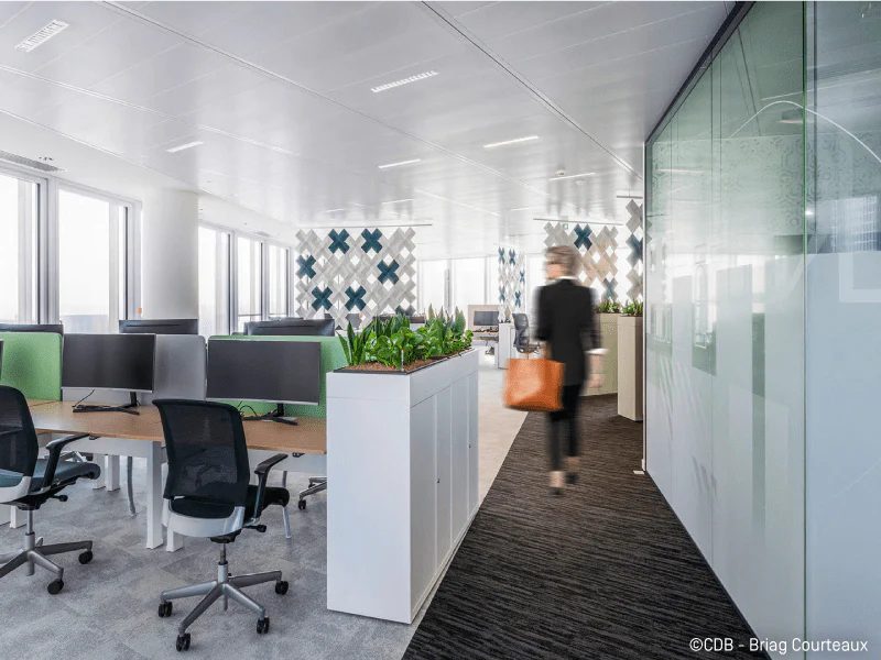 - Contrôle de l’environnement : Les occupants peuvent ajuster la température, l’éclairage, et la disposition de leur espace, ce qui améliore leur confort de travail.