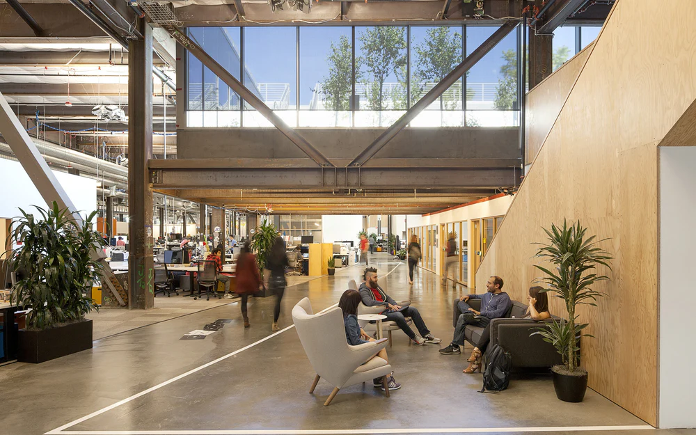 L’emblème de cette nouvelle typologie d’espace de travail qui se veut axée sur le bien-être est le MPK20, siège de Facebook inauguré en 2015 à Menlo Park en Californie : une superficie grandiose de 40.000 m2 pour seulement 2.800 employés, et 36.000 m2 de jardin où ils ont la possibilité de travailler au grand air. Tous les services comme la blanchisserie ou la réparation de voiture sont intégrés. Le but est toujours de « renforcer l’esprit de communauté » grâce à des espaces ouverts selon Mark Zuckerberg.