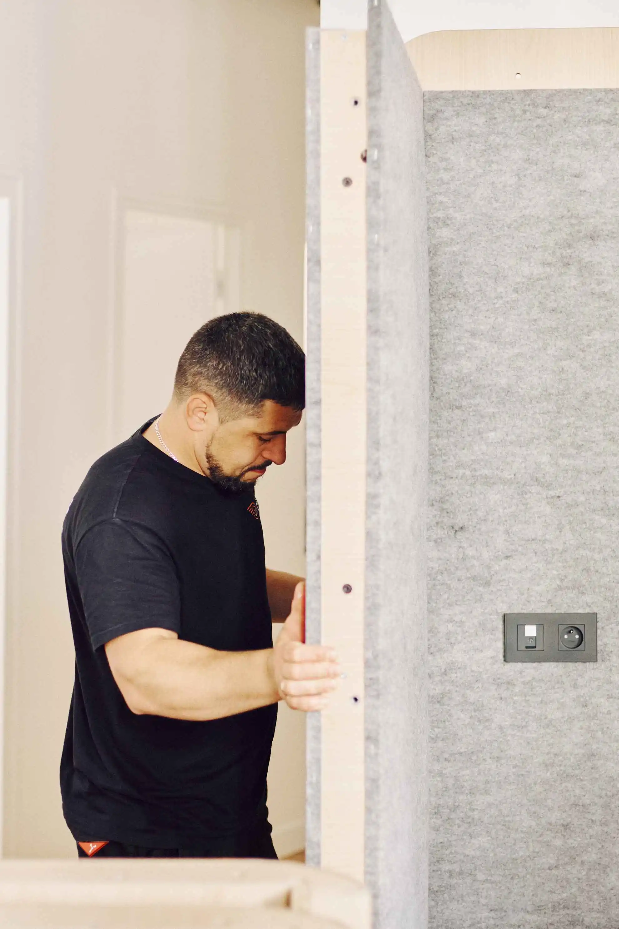 Nos cabines acoustiques sont fabriquées et pré-assemblées en usine, puis livrées et montées par nos équipes. Notre cabine acoustique Island Solo est montée en moins de 20 minutes, l'Island Quattro est assemblée en moins d’une heure.