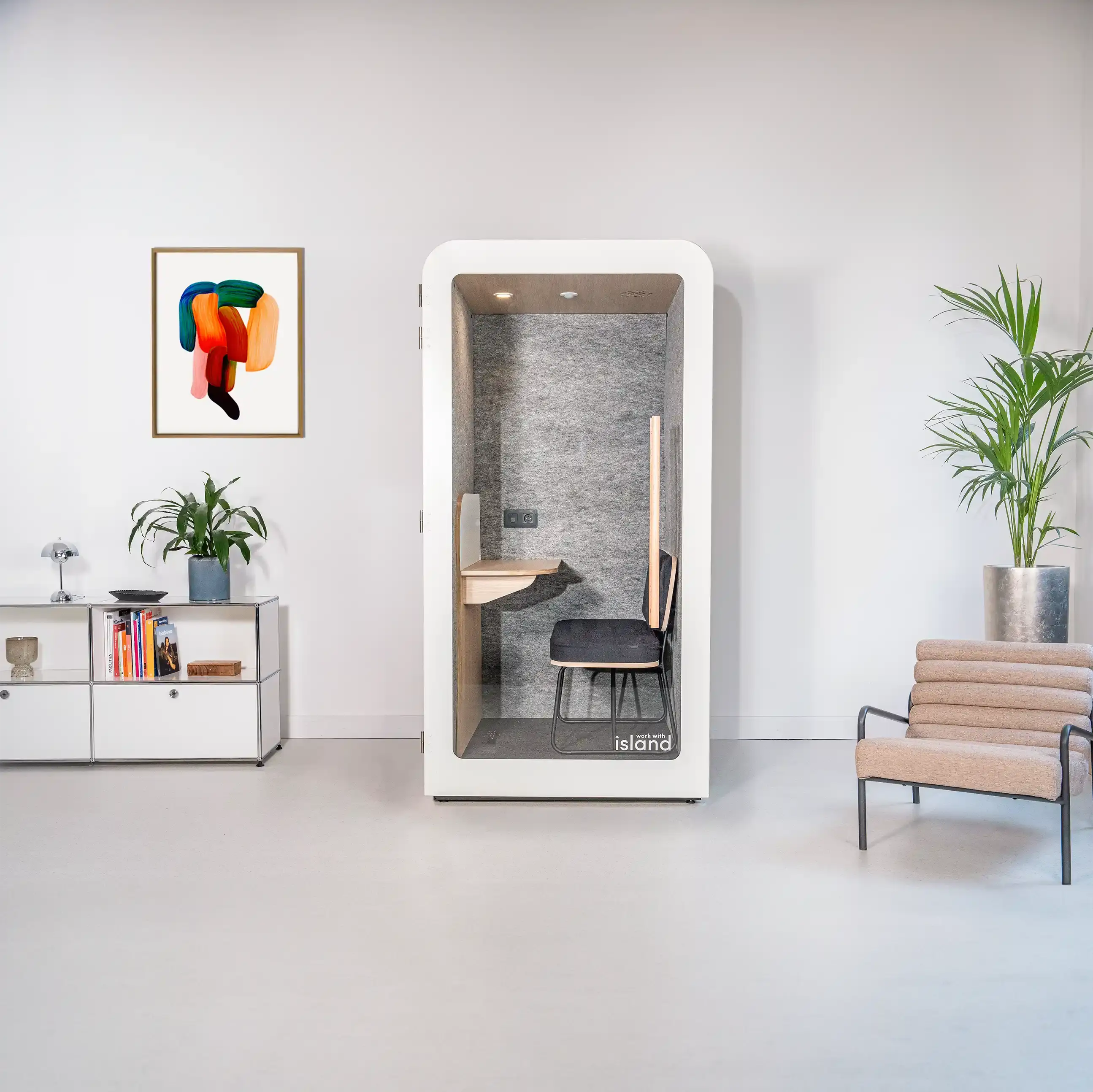 Island Solo est notre cabine acoustique individuelle idéale pour des appels et visioconférences de courte durée.