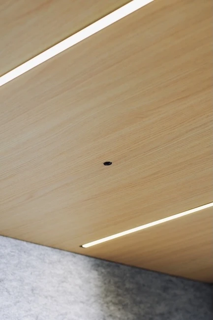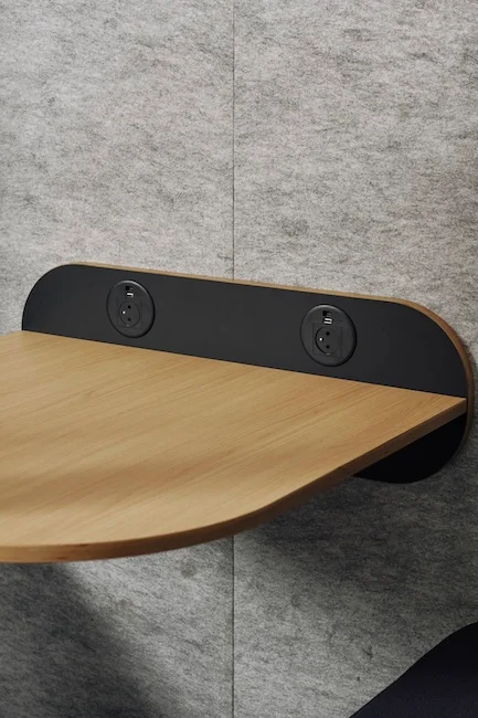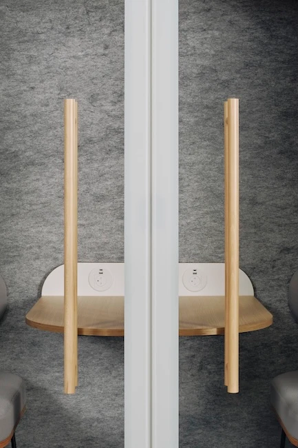 La cabine Quattro réduit les nuisances sonores jusqu’à 29,8 dB selon la norme ISO 23351-1. Sa construction multicouche, associant bois, Métisse® recyclé et feutrine acoustique, isole efficacement la voix tout en évitant la réverbération.